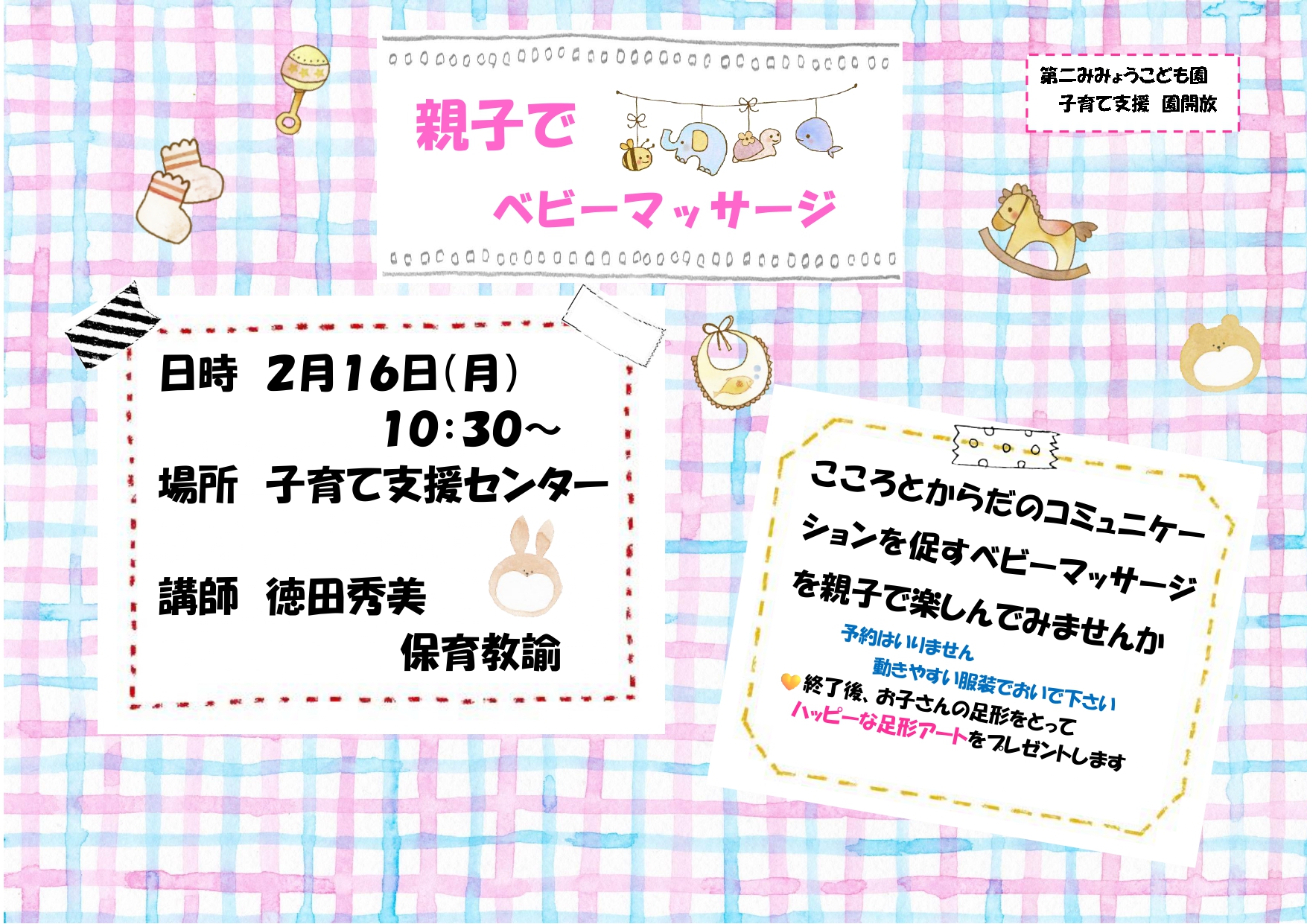 「親子でベビーマッサージ」のお知らせ
